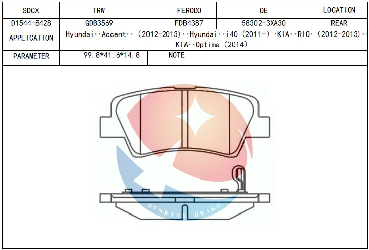 SDCX D1544-8428 / D1594-8428 / GDB3537 48413-350A0/D11266MH/GDB3569/SP140/14050047600 Brake Pads for AURIS TOURING SPORTS Estate